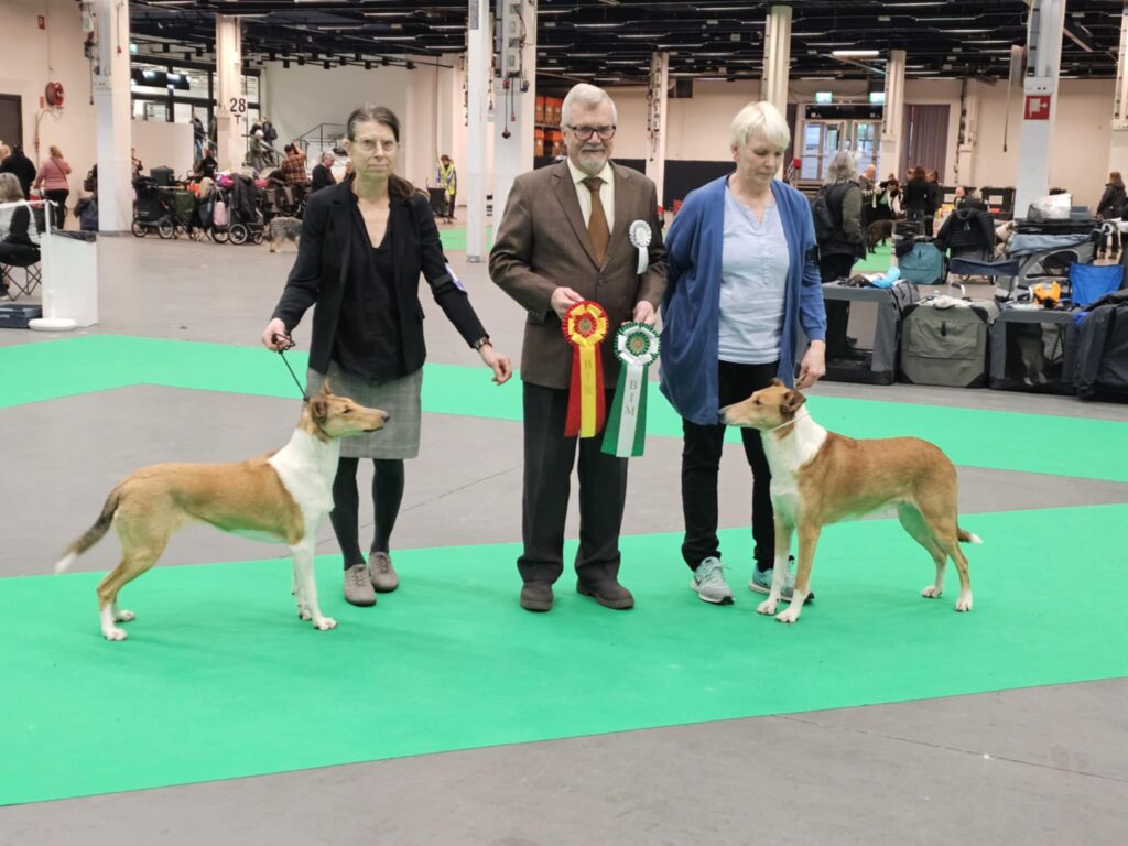 Astolat’s Ipsea gjorde i helgen sin utställningsdebut på Stora Stockholm med strålande resultat; CK , Junior – CACIB och BIR, vid den ringa åldern av 10 ,5 månader. Astolat’s Endivia Éxacum kammade hem CK, ett Veteran – CACIB, blev bästa veteran och tog dessutom en 2a placering bland tikarna. Bra jobbat Ipsi och Rubra!
